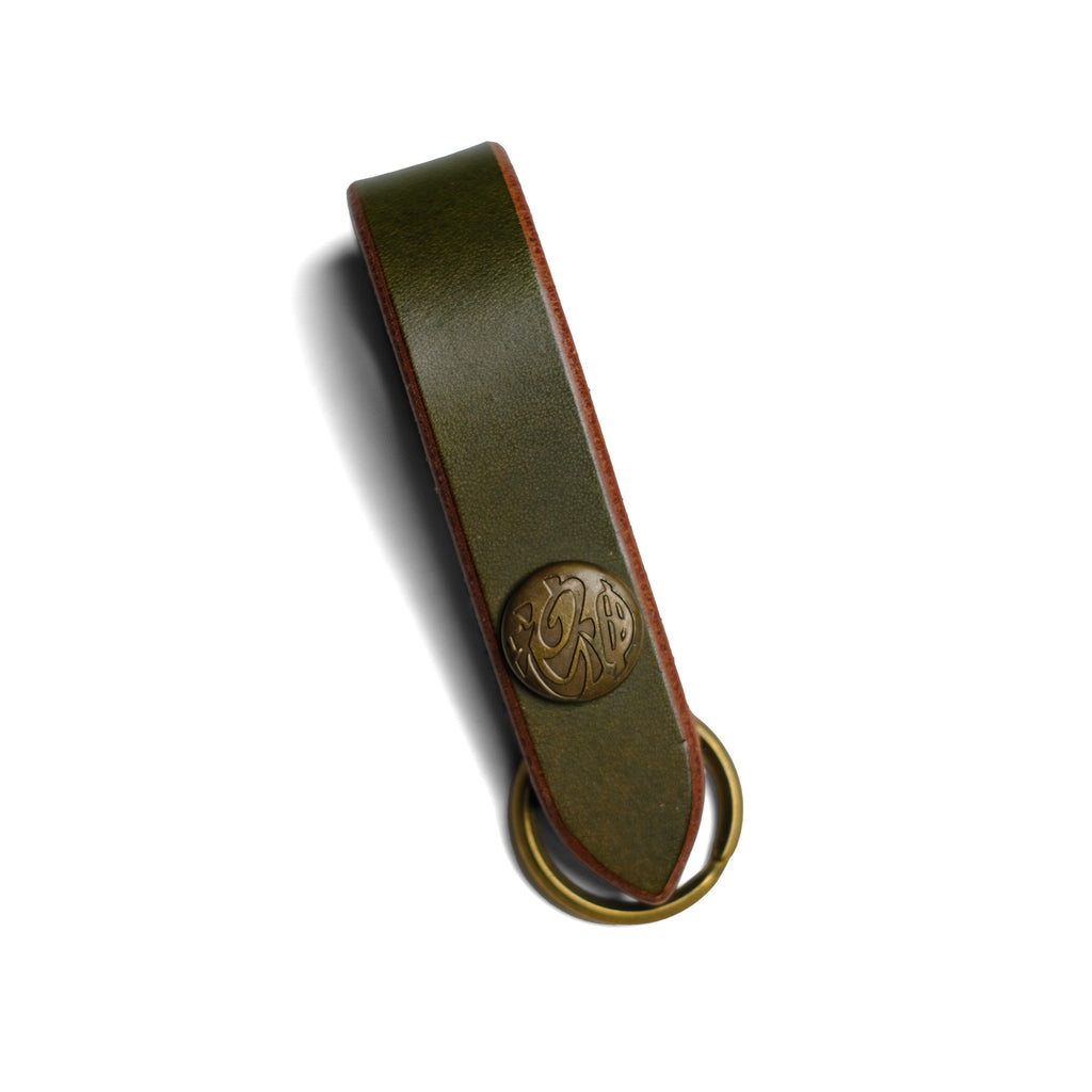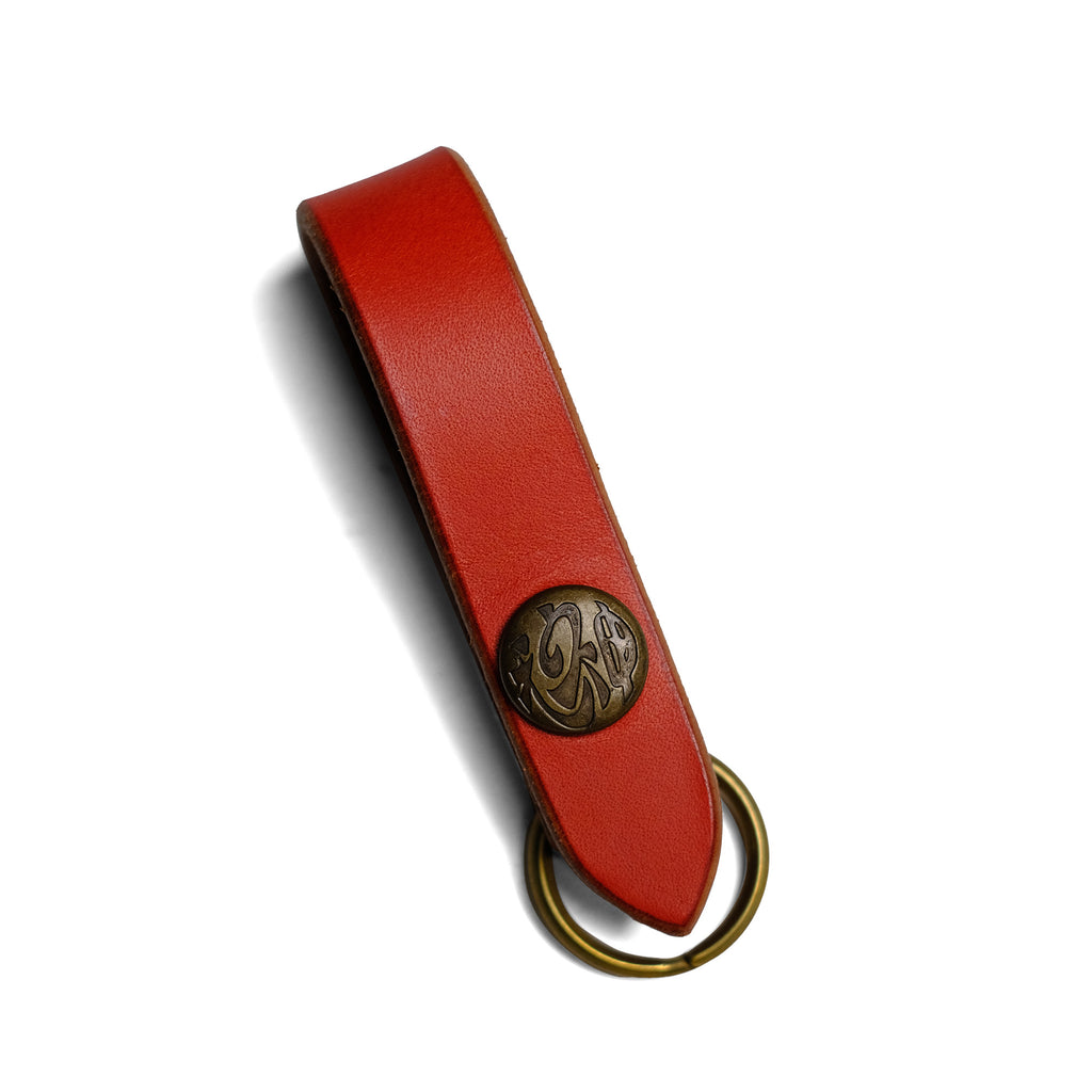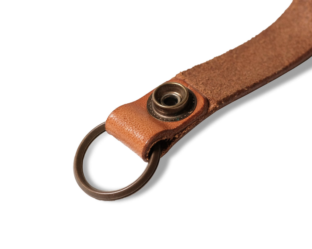 オリジナルのブラス製のホックが付いたプレーンなキーホルダーです。用途は様々でベルトに通して使用しても良し、そのままキーをぶら下げて使用しても良し。また、ウォレットロープをつないでベルトループホルダーとしても使用可能です。 ブラス製の金具は革の経年変化と共に風味を増し、独自のアイテムとなります。