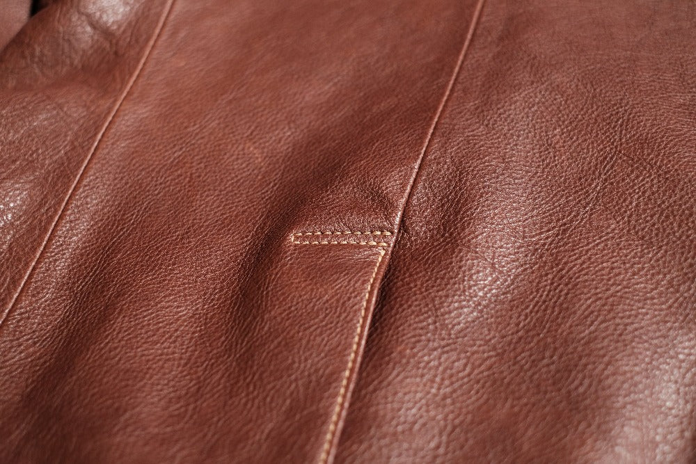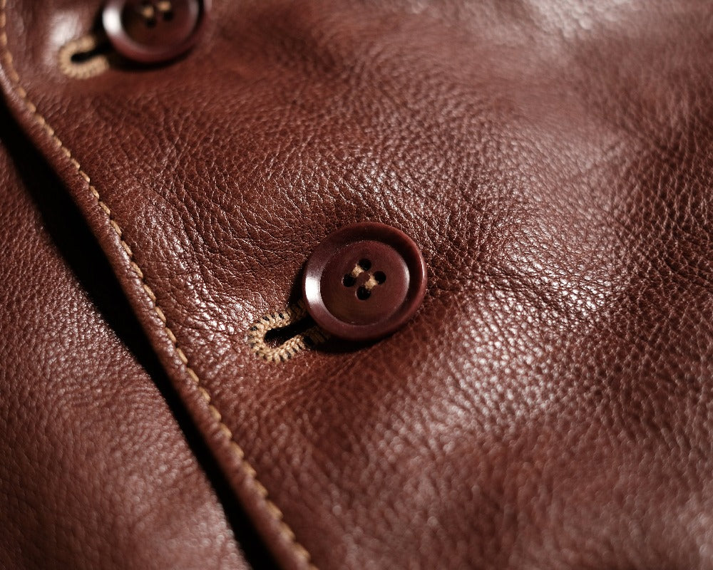 - 表→牛革(国産牛地生)、裏生地→コットン50%、キュプラ50%、袖裏地→コットン100%、革厚:1.0mm