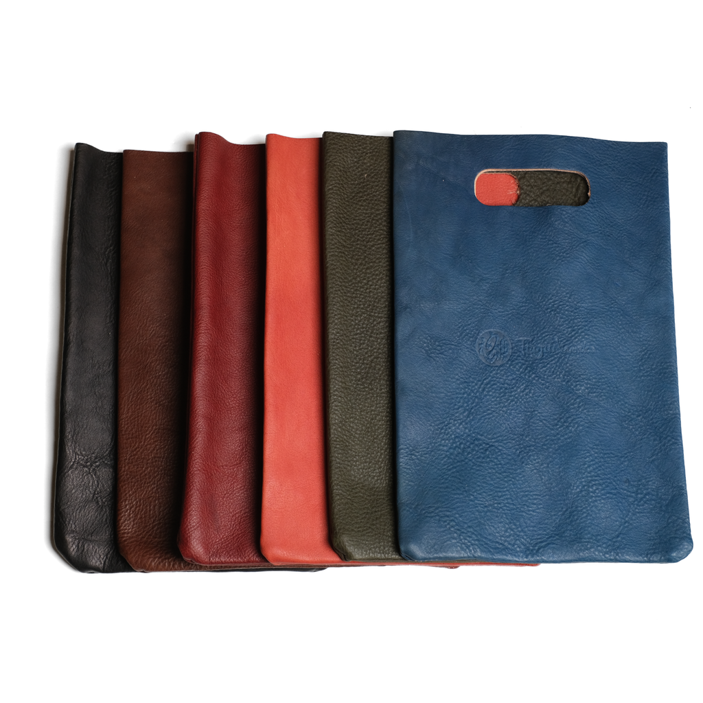 栃木レザーは、国内でも希少な ベジタブルタンニン鞣し専門のレザーファクトリー。160もの巨大なピット槽で、時間をかけてじっくり鞣し作業を行い、最上級の革が出来上がる。20にも及ぶ細かい作業工程は、今でも機械に頼らずプロの目と手を頼りに進められることが多く、ブランドからのオーダーや特別受注の場合は、さらに複雑な工程を経る。強くて柔らかいヌメ革を追い求めて、長年守り続けてきた匠の仕事。