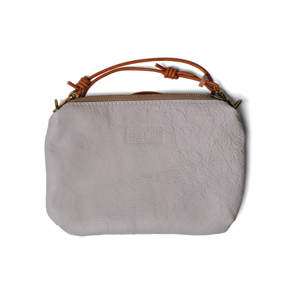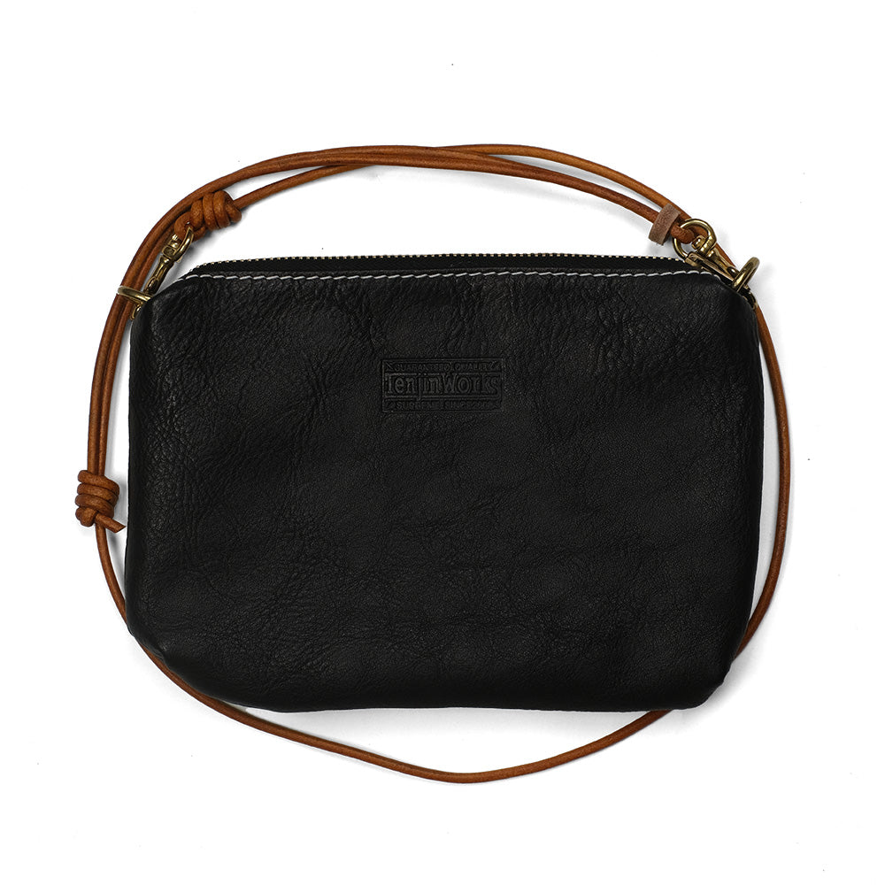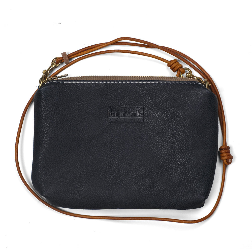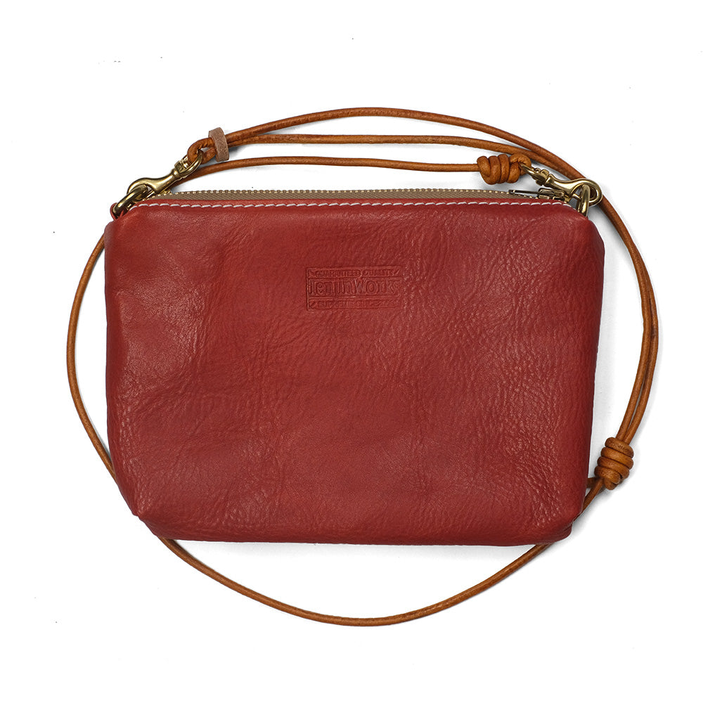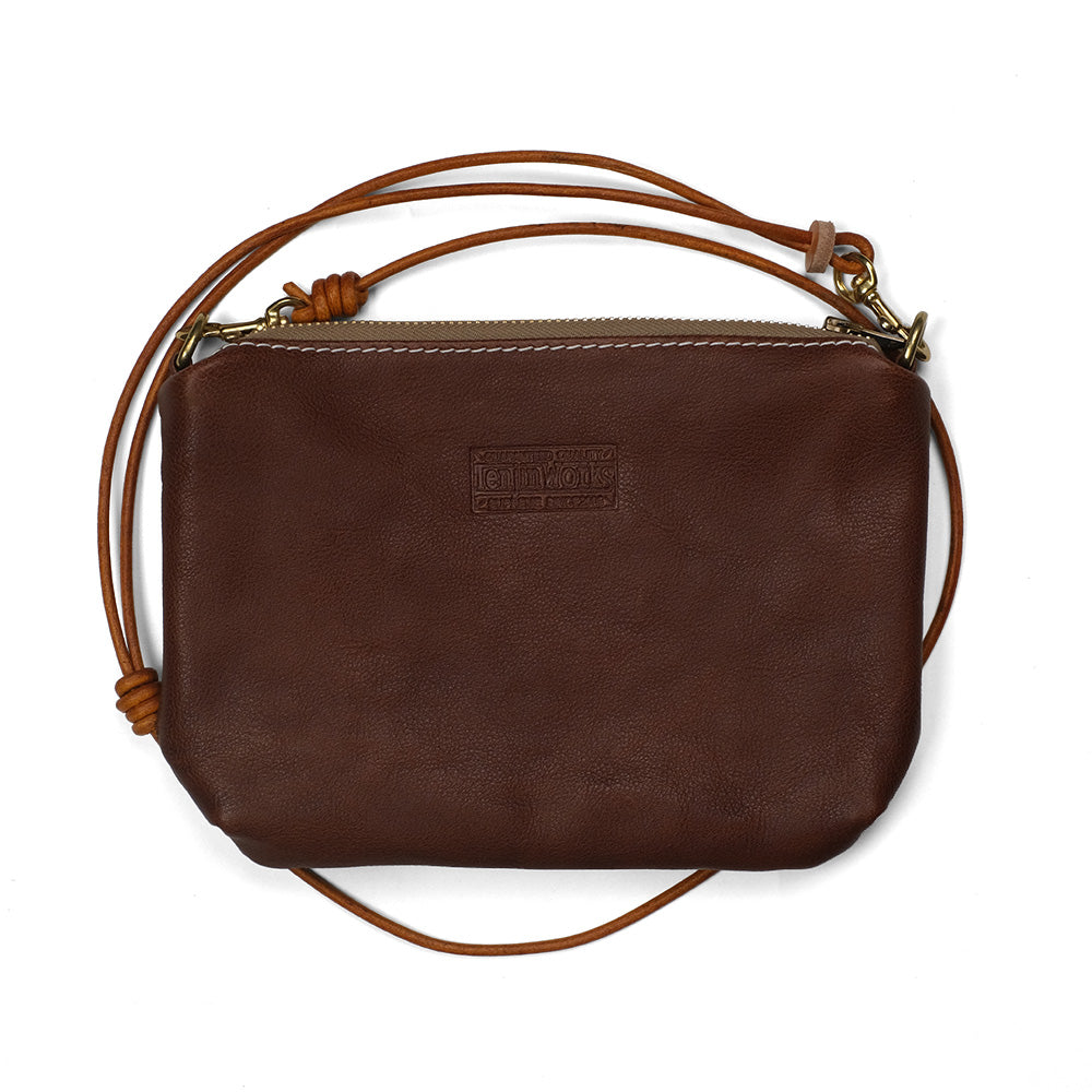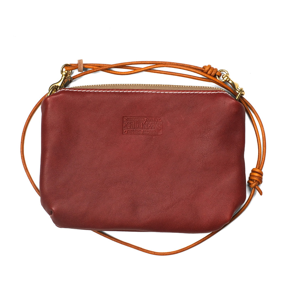 サコッシュ ワイド 横型のコンパクトで扱い易いサコッシュです。 スマホやウォレット、キーやリップ、イヤホン等を収納できて、手ぶらで外出するのに便利です。 ライニングもコットン製のスレーキを採用し、収納するアイテムを保護してくれます。 口周りはブラスジッパー使用でそのヴィンテージの風合いがレザーにマッチします。 ショルダーもレザーの丸紐でボディと含め全てでレザーエイジングが楽しめます。また、ショルダーは取り外し可能で、レザーポーチとして2wayで使用できます。 カラーも8色の中からお好きな色をお選びいただけます。 デイリーユースで使用できるショルダーバッグとしてどうぞお楽しみ下さい。