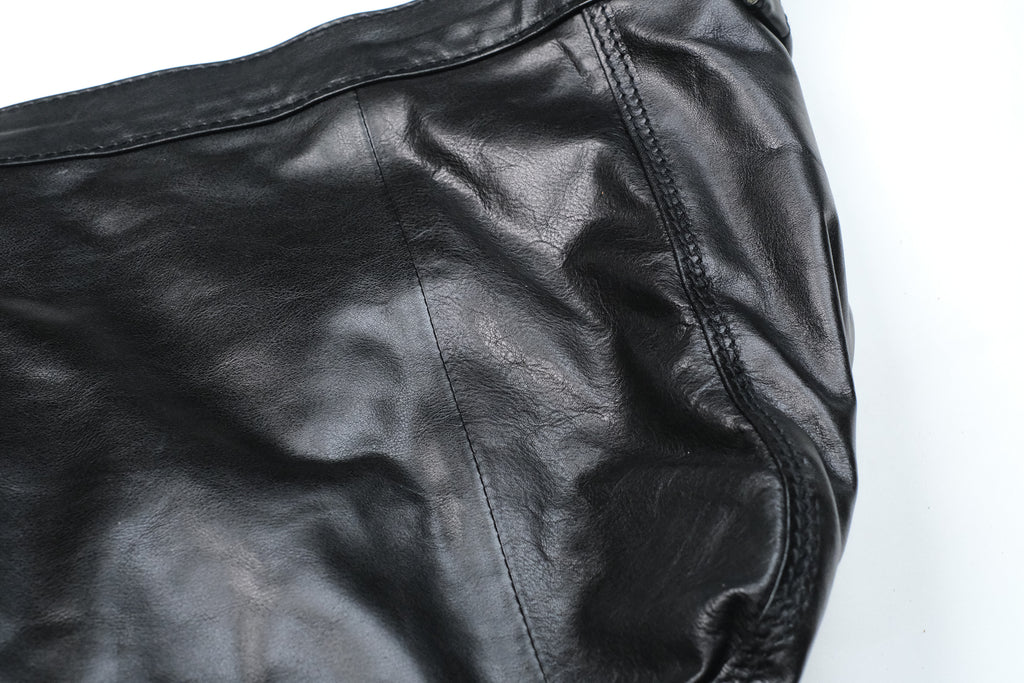 60sに使用されていたニュースペーパーバッグをモディファイし、オールレザーで再構築したショルダーバッグです。 マテリアルも人気のOiled kip leatherを贅沢に採用し、その使い込んだ際のドレープ感も楽しみな逸品。 ヴィンテージのニュースペーパーバッグはライニング無しで内ポケットも付かないですが、こちらはヴィンテージの風合い漂うヘリンボーン柄のコットンライニングを採用し、内ポケットも全部で4箇所備え付けております。 両サイドのマチ部分にあるポケットはペットボトルやロングウォレット等を容易に収納でき出し入れもスムーズに使用できます。 また背面の2ポケットはスマホや鍵、カードケース等、収納する物は様々、自由にお使い頂けます。 メインのポケットも大容量でザックリと荷物を入れて頂き、レザーの馴染みをお楽しみ下さい! ニュースペーパーバッグらしいワイドのショルダーストラップとザックリとしたボディーのカタチはこの柔らかくてしなやかで軽いレザーにピッタリなキャッチーさを演出してくれます。