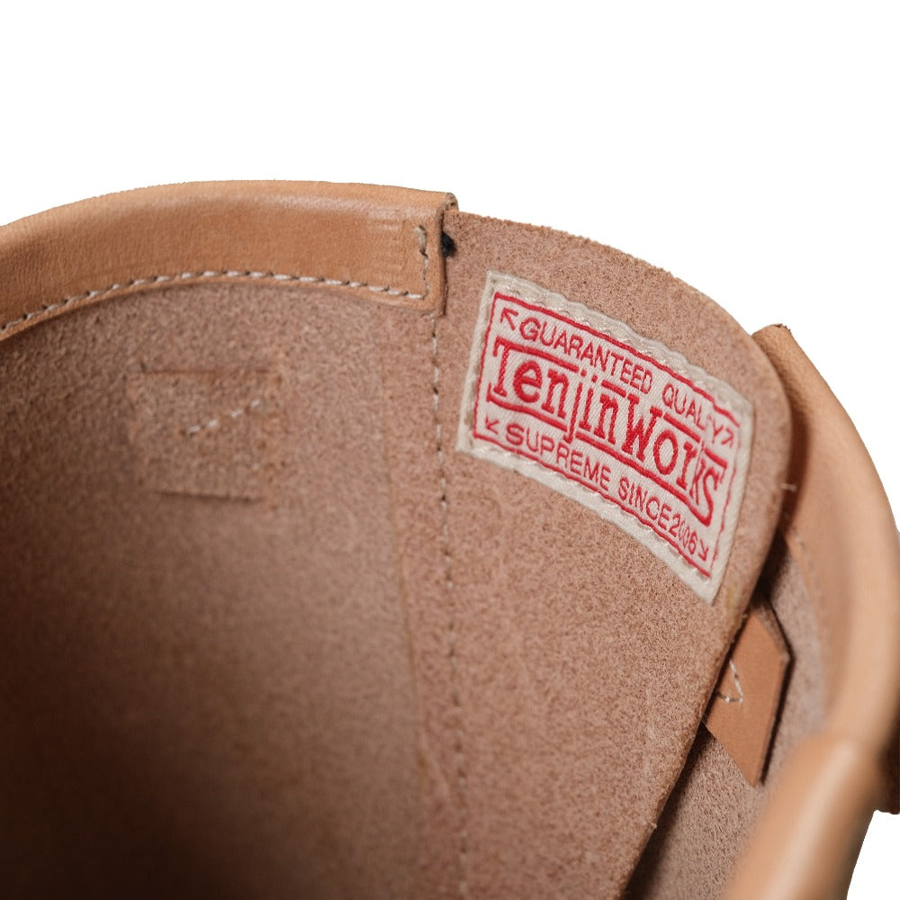 2006年ブランド創業以来、アメリカヘリテイジを中心にヌメ革で新たなプロダクトを再構築しながらも、その根底には「使うほど、着るほどに美しく変化するレザーエイジング」への拘りをモノづくりに転化させ続けているレザーブランド。 天神ワークスが考えるエイジングとは、時を重ねてなお輝きを増すプロダクト達。使い込まれ、人に寄り添うほどに、たった一つの温度感が育まれていく感動。 レザープロダクトに真摯に向き合い、使い込まれた後のエイジングとは何かを追求している。「Old is Gold」…その旅路はそのつくりと共に継承されてゆく。
