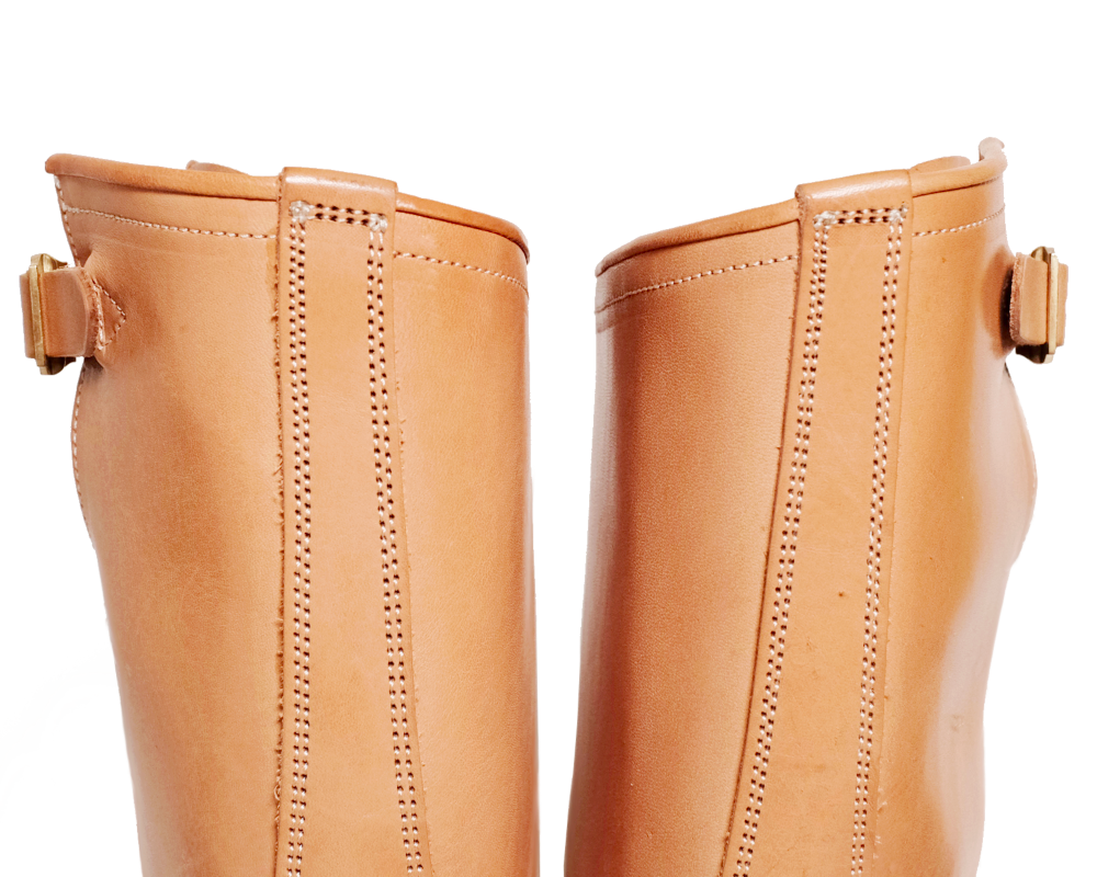 幾度もパターン修正を繰り返し、オリジナルラストでつくりあげた天神ワークスのスタンダードなエンジニアブーツ。 使用する金具もオリジナルのブラス製のピンバックル。 フルベジタブルタンニングレザーのもつ可塑性による経年進化で、使い込んだ後にかたちづくられる造形美が楽しみな逸品です。