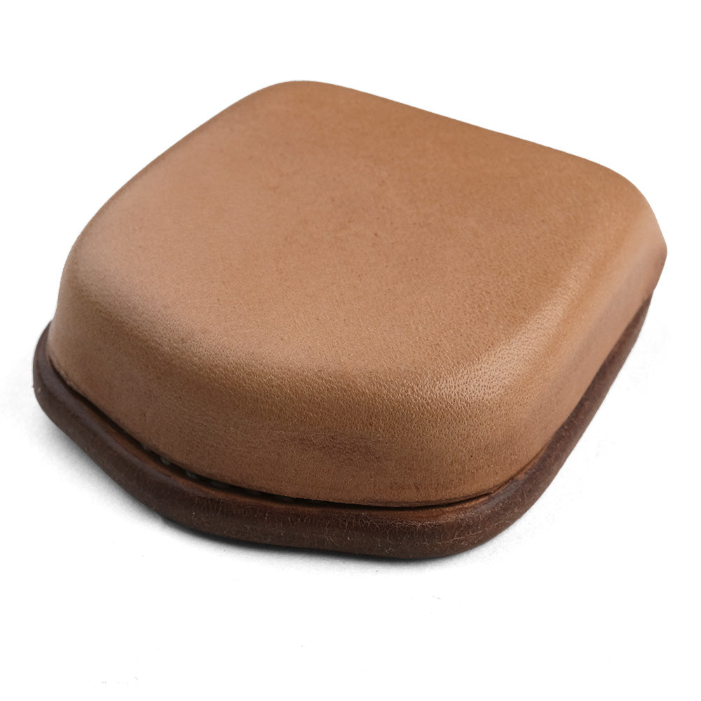 技術を駆使した馬蹄型コインケースです。 "シボリ"というタンニンなめし革の特性を活かした技法で、形状の型をつけて成形されております。 ステッチワークを極力減らして形状記憶によるレザーの質や厚みから描かれる曲線を大事につくりあげております。その為、見た目のシンプルさから生まれる優美さは勿論の事、手馴染みもよく、革のエイジングがそのままこのアイテムの顔ともなるでしょう。 フタとケースのどちらともシボリをする為、開閉が上手くいく為に何十個ものシボリを繰り返し、開閉時の収まりも含め、ようやく理想のカタチに辿り着いた作り手の至極の逸品です。ケースのシボリの際にひとつひとつワイヤーを入れて、フタがひっかかってくれるように凹みを持たせてる仕組みもどうぞご覧下さい。 小さいながらも職人技がふんだんに盛り込まれたコインケース。そのコンパクトさとは裏腹に中にはコインが20枚ほどストレスなく収納できます。出し入れも容易でその使いやすさにも拘りました。 ぜひ日常のお共にお選び頂けたらと思います。